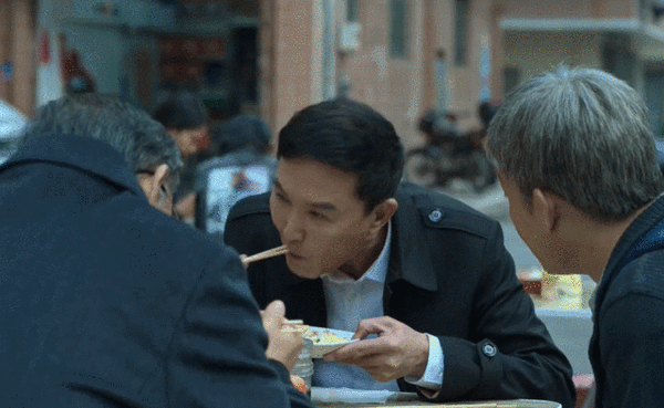 兩人第一次吃豬腳麵,安欣懷疑高啟強和謀殺案有關,這時高啟強處於劣勢,他心裡慌張,吃麵吃得狼吞虎嚥。