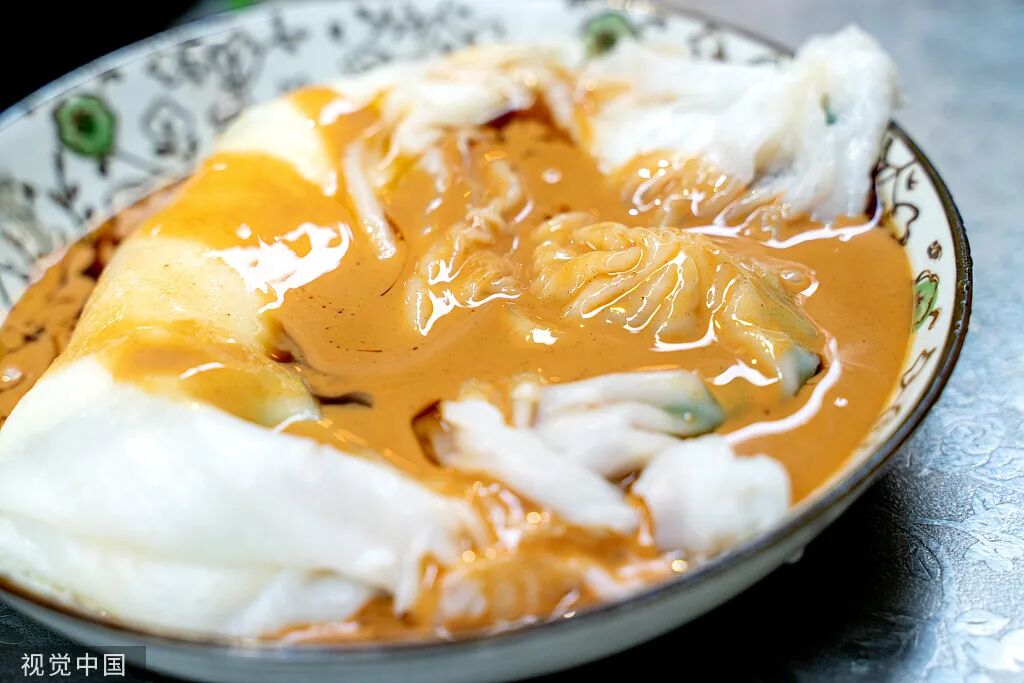 另一種就是潮式腸粉,醬汁更多以花生醬、芝麻醬或沙茶醬為主,醬汁更加濃郁,一口就能得到極致的滿足。