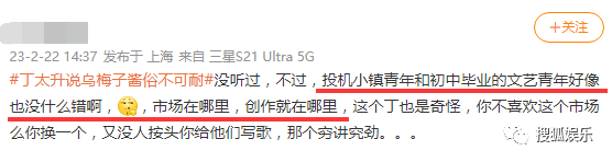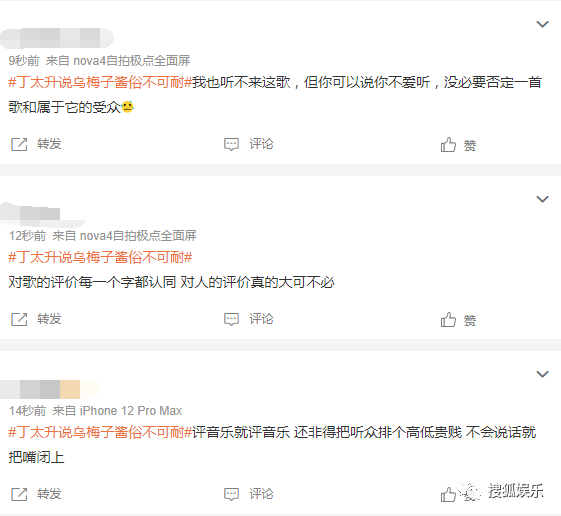 以及,丁太升可以說自己不喜歡聽這首歌,但不應該去否定它的受眾,給網友審美排個高低貴賤出來。