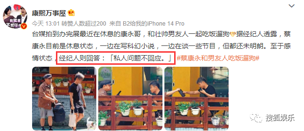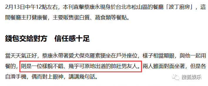 3、臺媒曝蔡康永有新歡?與男友人共進午餐遛狗回家
