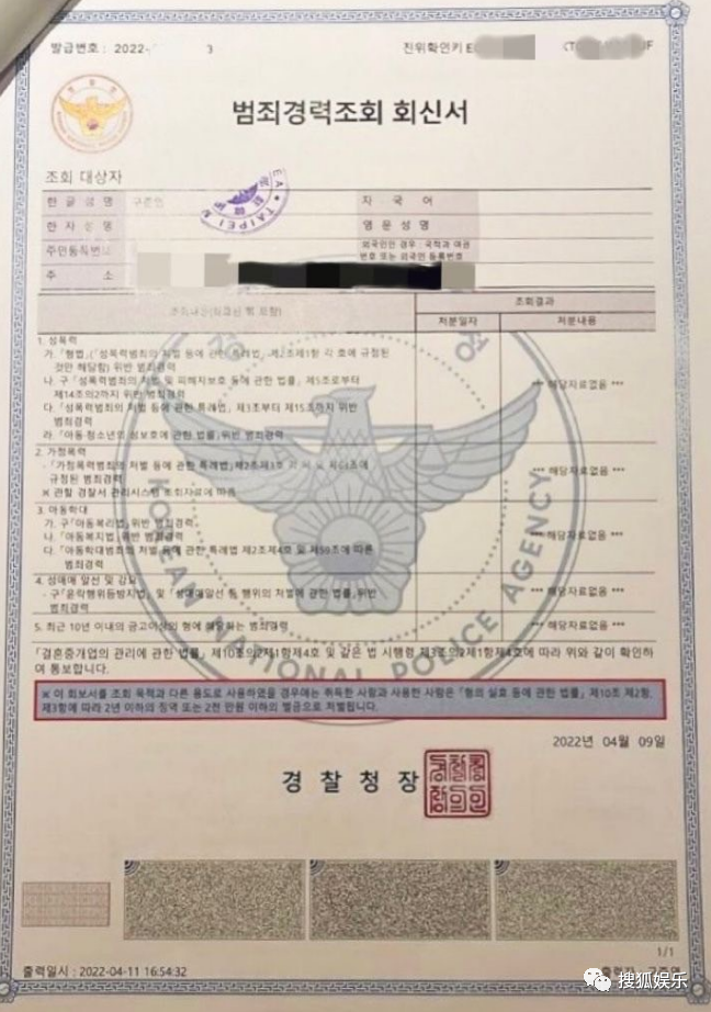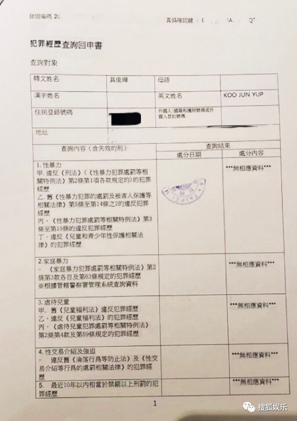另外,具俊曄也首次公開了自己的無犯罪記錄證明。