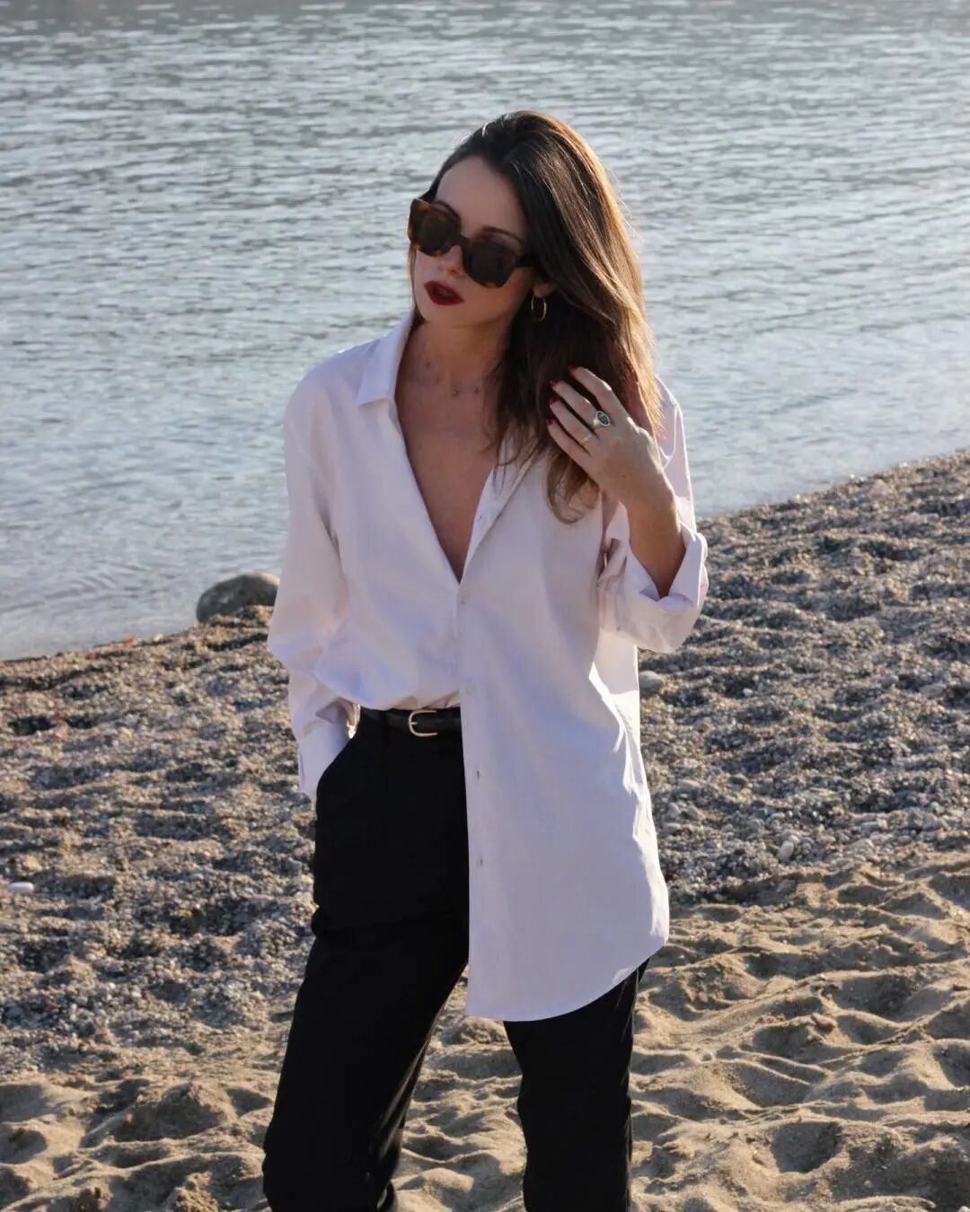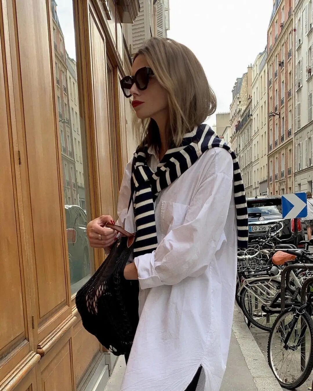 襯衫也是法式風格中常用的單品,打造慵懶法式風情的秘訣在於,隨意地解開一兩顆釦子,更顯隨性自在,在不經意間增加高級感▼