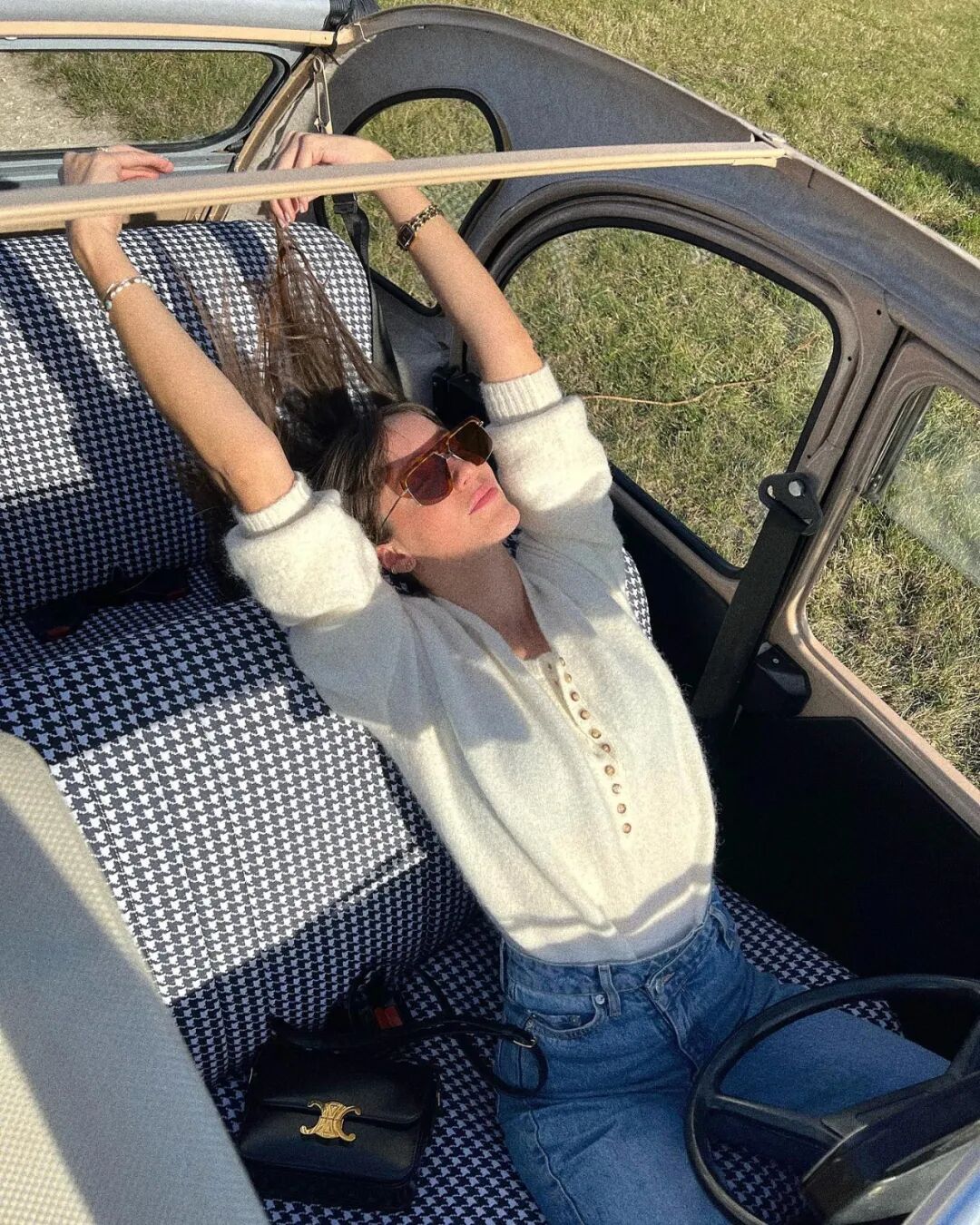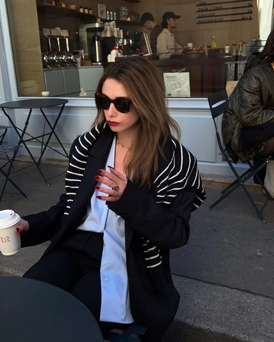 時尚博主Solène Lara就對這種毛衣當披肩的穿法很是鍾愛,為整個造型注入恰到好處的休閒感,法國女性的那份慵雅隨性呼之欲出▼