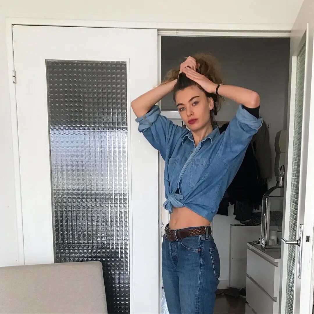 她們也很喜歡在下襬打結的穿法,保留原有的慵懶感同時帶一點小性感,露出肚臍眼,在視覺上拉高腰線▼