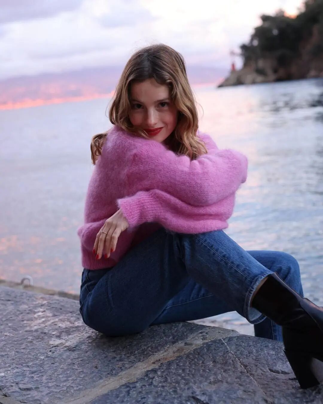 直接作為披肩搭在肩膀上也是不錯的選擇,可以把袖子打結紮起來,也可以更隨意一些,把針織衫直接敞開披在身上,法式慵懶灑脫的調調一鍵get▼