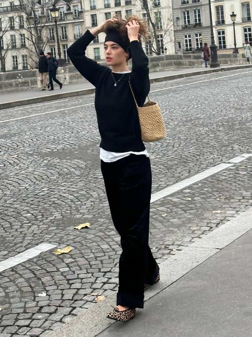 在她們的穿搭中頻繁出現的芭蕾舞鞋也是牛仔褲的好搭檔,舒適又時髦,毫不費力地穿出輕盈利落感▼