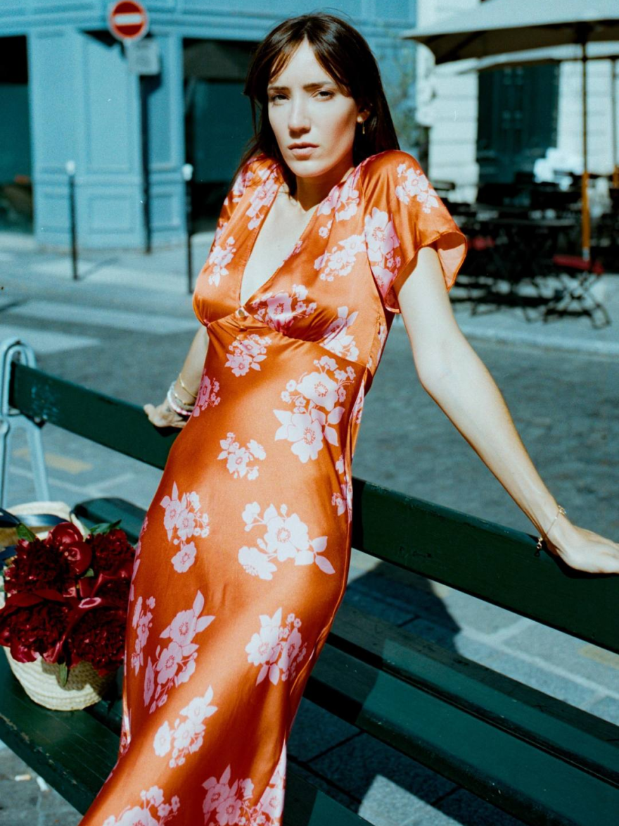 緞面材質的印花裙也一定不要錯過,法國女人的Effortless chic造型離不開緞面單品的加持,在慵懶隨意中展現優雅氣質▼