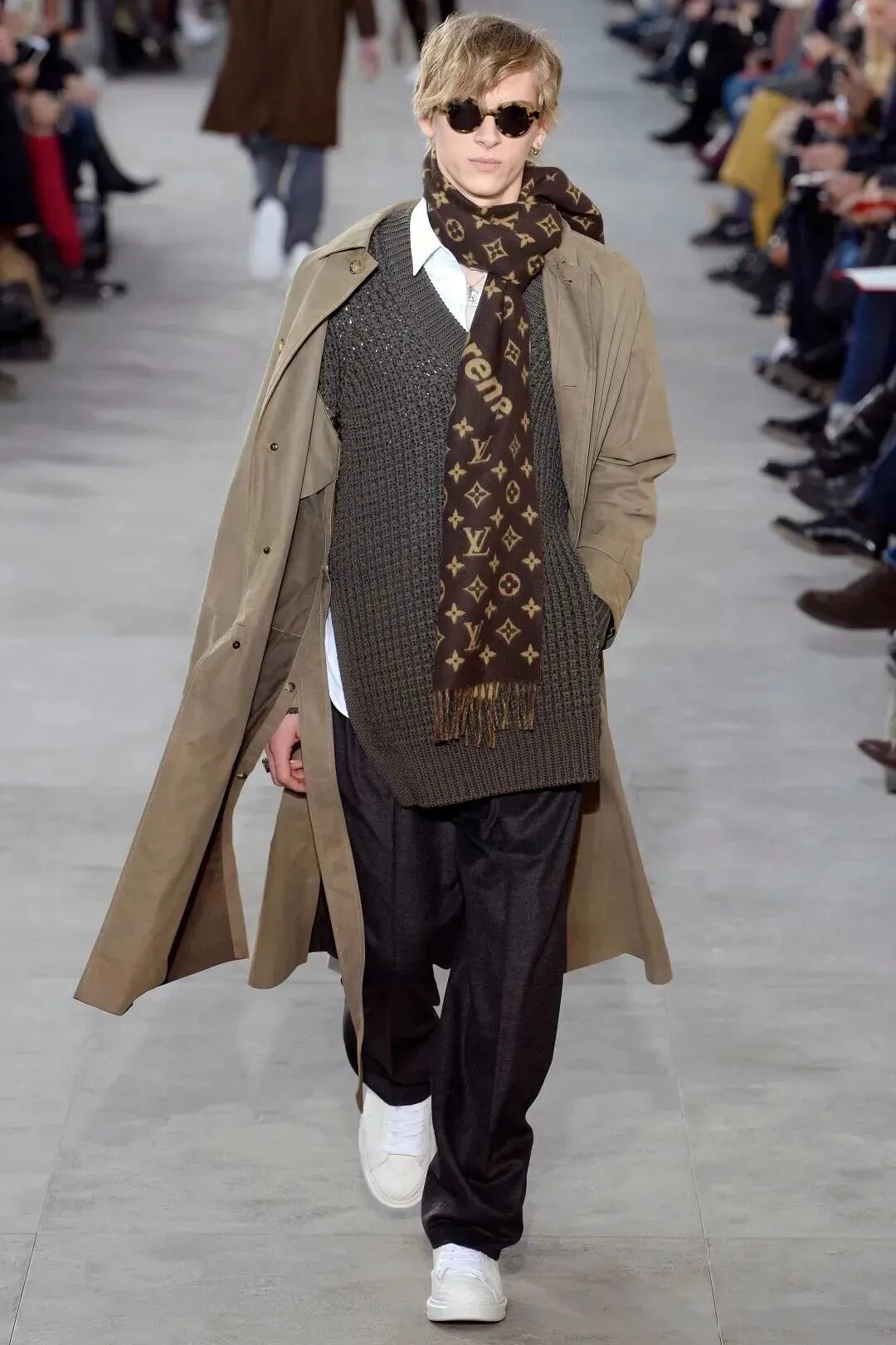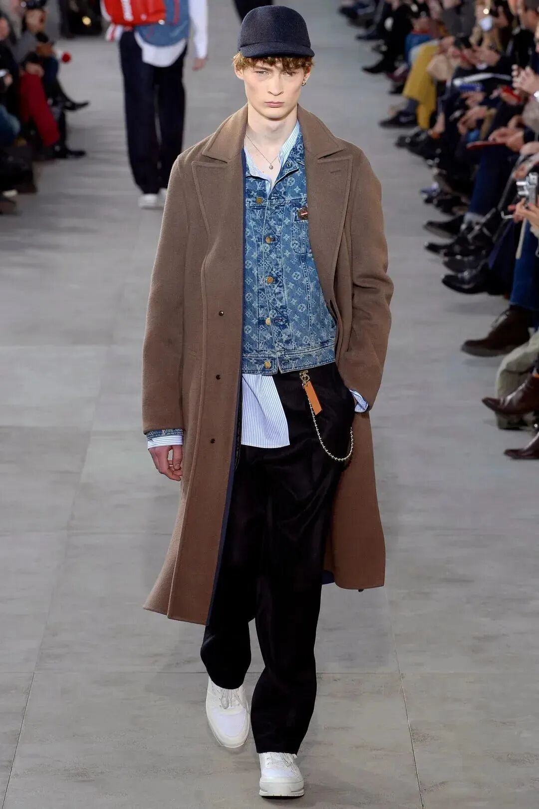 把時間線調回到17年秋冬的秀場上,在Kim Jones擔任創意總監時期的Louis Vuitton,街頭潮流品牌Supreme第一次以正式的"身份"登上奢侈品的新一季度秀場之上,這為街頭文化打入時尚圈提供了一個強有力的基礎,也為時尚圈拉開了一個聯名時代的序章。