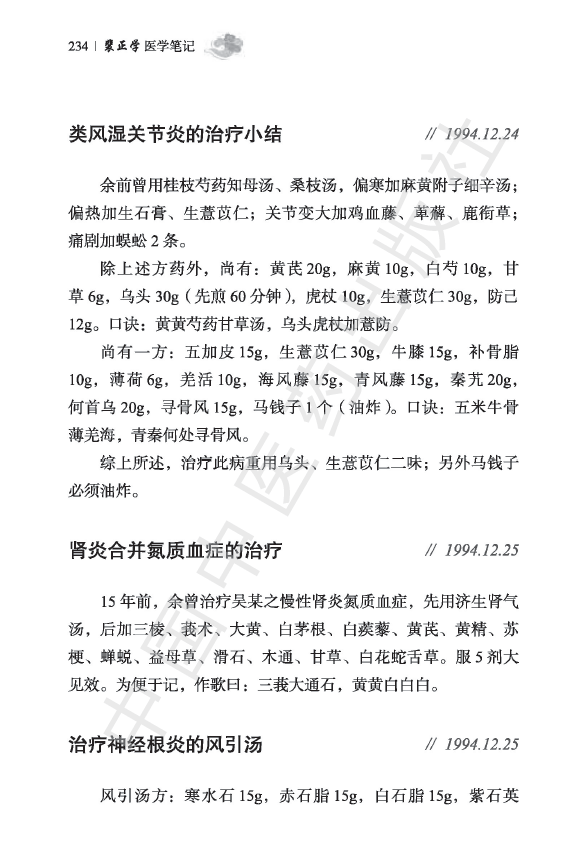 當然,除了記錄裴正學的中醫心得,書中還有對西醫理論、西藥新藥、實驗研究等多維度思考,還有其父親裴慎先生治療各類疾病的特色特長,如治療高血壓、鶴膝風,談腎炎的治療等等,同樣啟發我輩讀者。