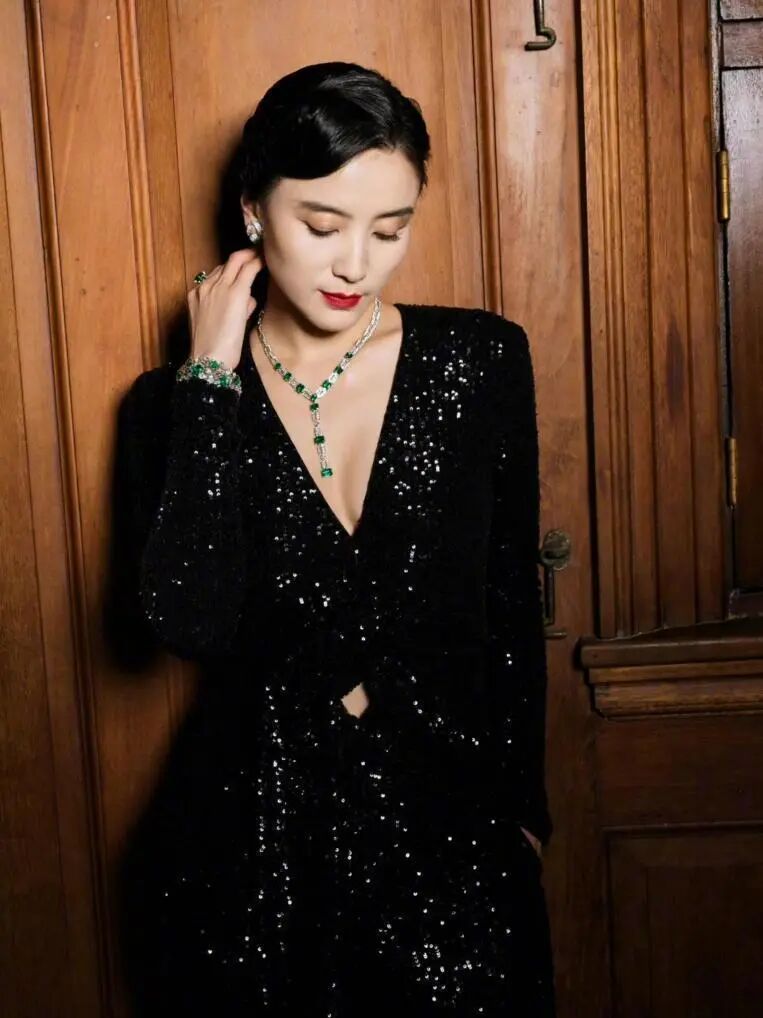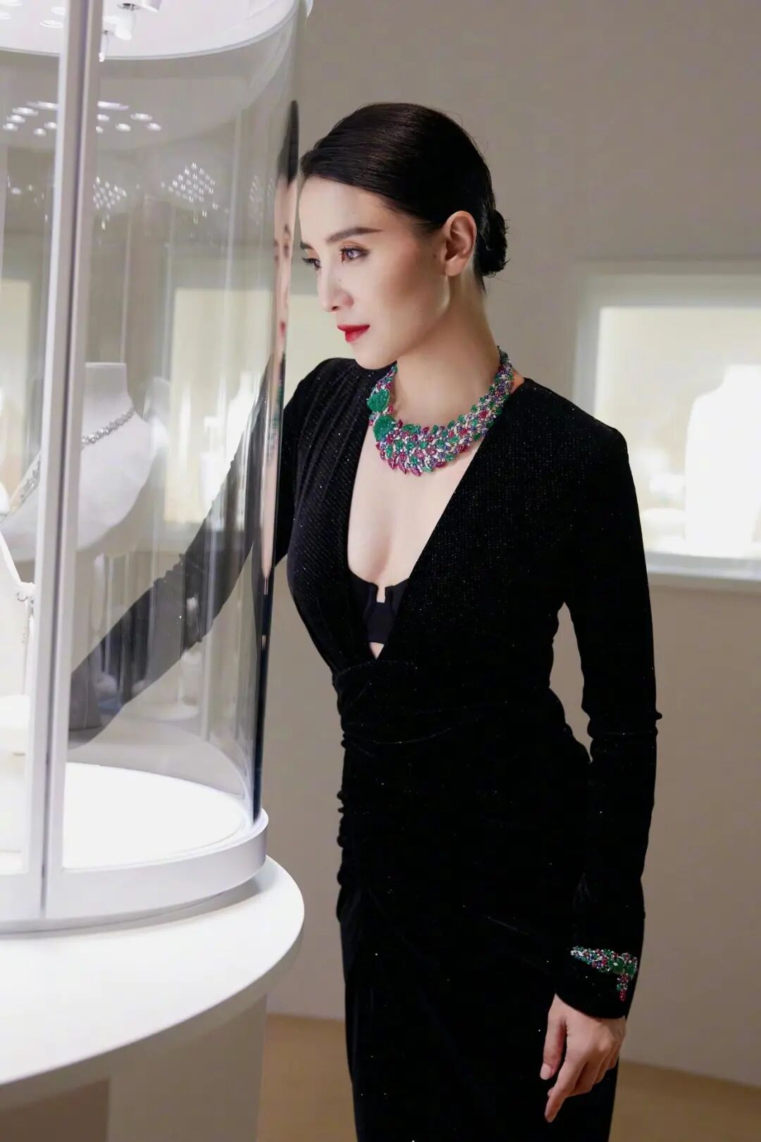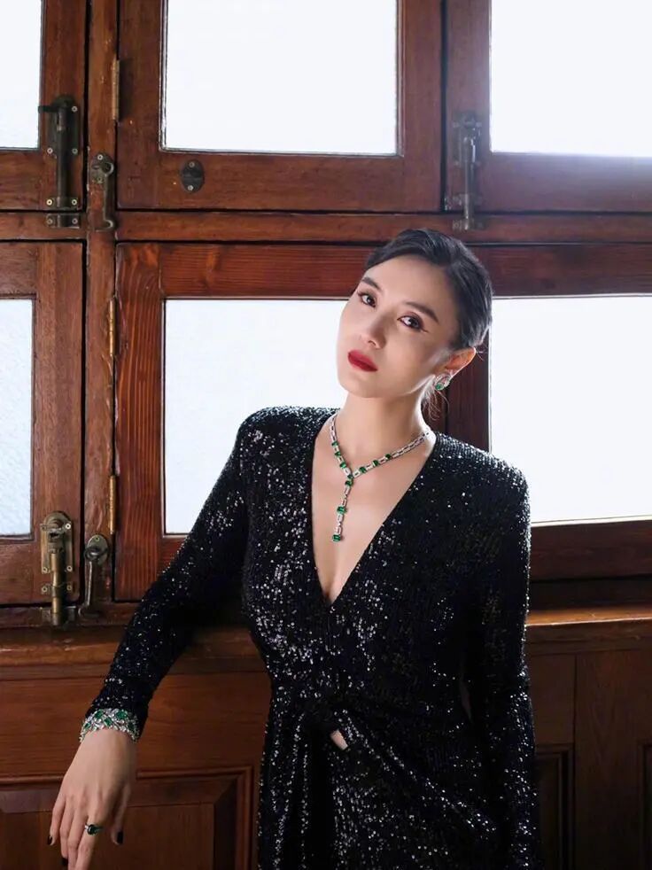 黑色的連衣裙本身就很襯膚白,宋佳還巧妙地搭配了一條翡翠綠項鍊,這也更加高貴了,從頭到腳都營造著高貴冷豔氣氛,真的是讓人愛了愛了。