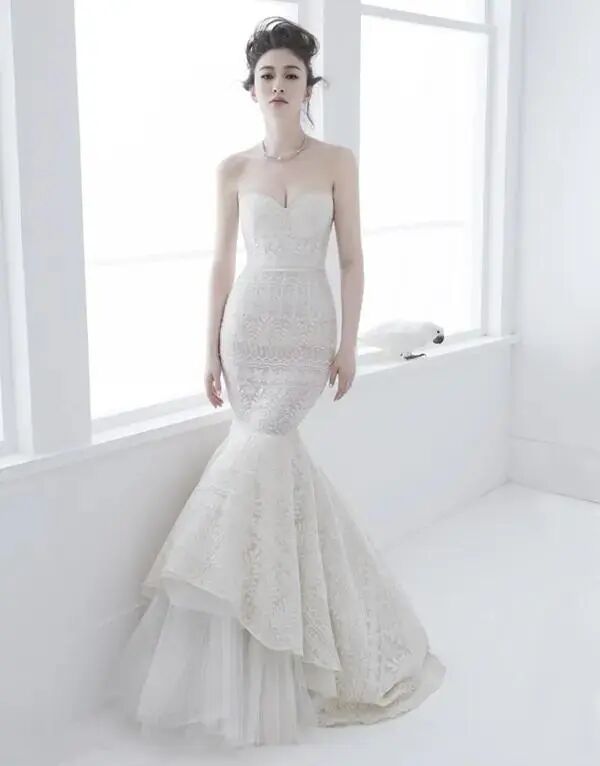 淺色系魚尾裙裙比較常見的應該就是白色或者淺藍色了,白色相對來說要更加優雅一些,而淺藍色則會給人清新甜美的感覺。