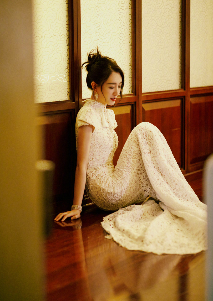 V領禮服的設計可以更好地露出李小冉的天鵝頸,顯示出像少女一樣的白皙稚嫩的皮膚,再加上珠寶的點綴顯得更加的貴氣。