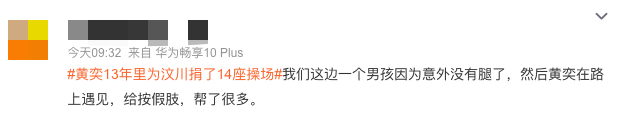 之前在#黃奕13年裡為汶川捐了14座操場#的熱搜底下(這個事兒是她去《乘風破浪的姐姐3》翻紅以後才曝出來的),就有很多感謝她的評論。