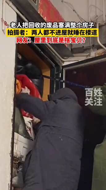 人家直接把回收的廢品塞滿了整個房子,進不了屋,就打地鋪睡樓道上。