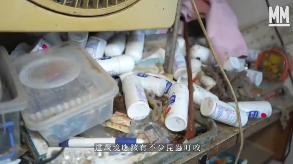 從縫隙踏著雜物進屋,37㎡的家不論是客廳、廚房、臥室、廁所,都堆滿及膝的垃圾和物品,蟑螂從各個角落湧出來,似乎已經很久沒有丟棄過任何一件東西。