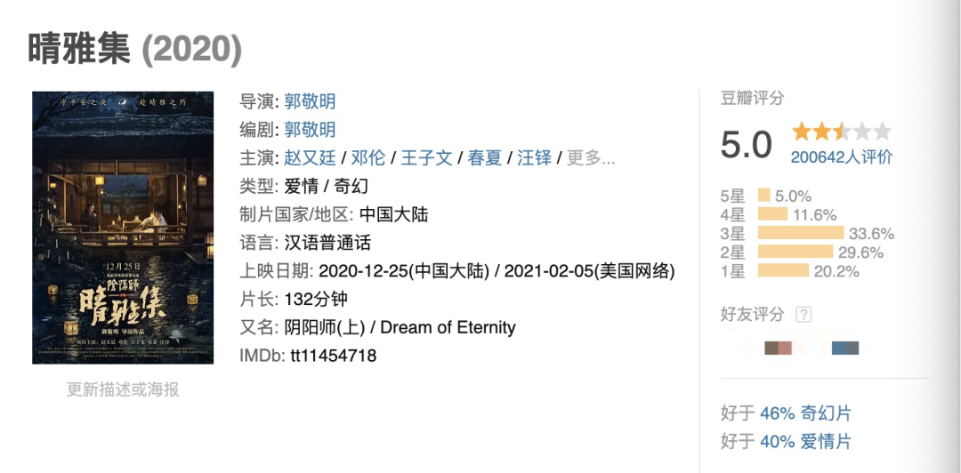他上一部導演的電影,叫做《晴雅集》,豆瓣評分只有5.0,看起來是一部徹頭徹尾的大爛片。