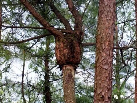 你看這棵樹好奇怪,它枝節膨出,好像鼓了個包,把這部分砍下來,這個時候,你又發現它原來是有油性的,是的,這就是中藥裡的油松節,入藥通常會切成片狀。