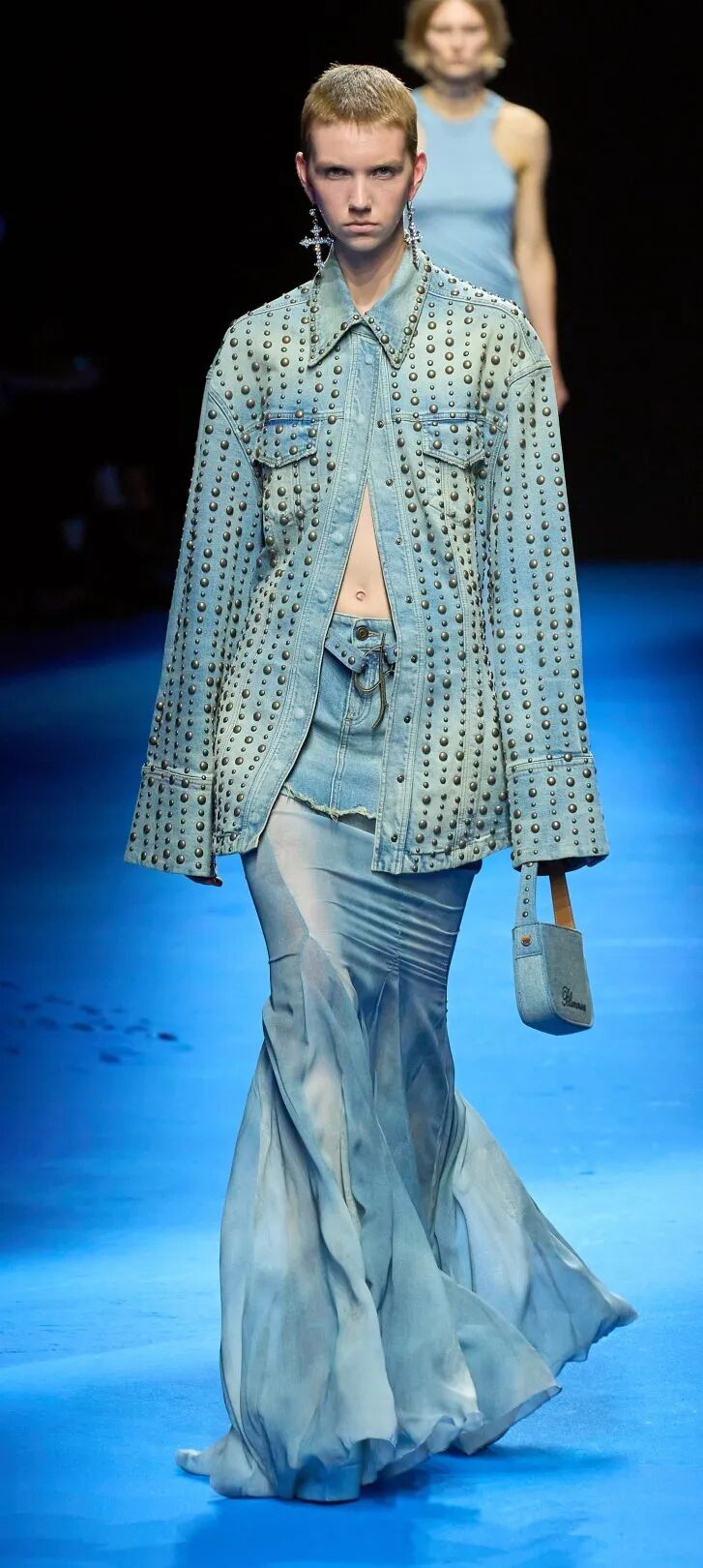 Burberry 用大廓型凸顯瀟灑,Blumarine 以鉚釘點綴增加酷感;Bally 新任創意總監則通過混搭,讓牛仔襯衫與金色珠寶、高開衩長裙搭配,展現性感而強烈的女性魅力。