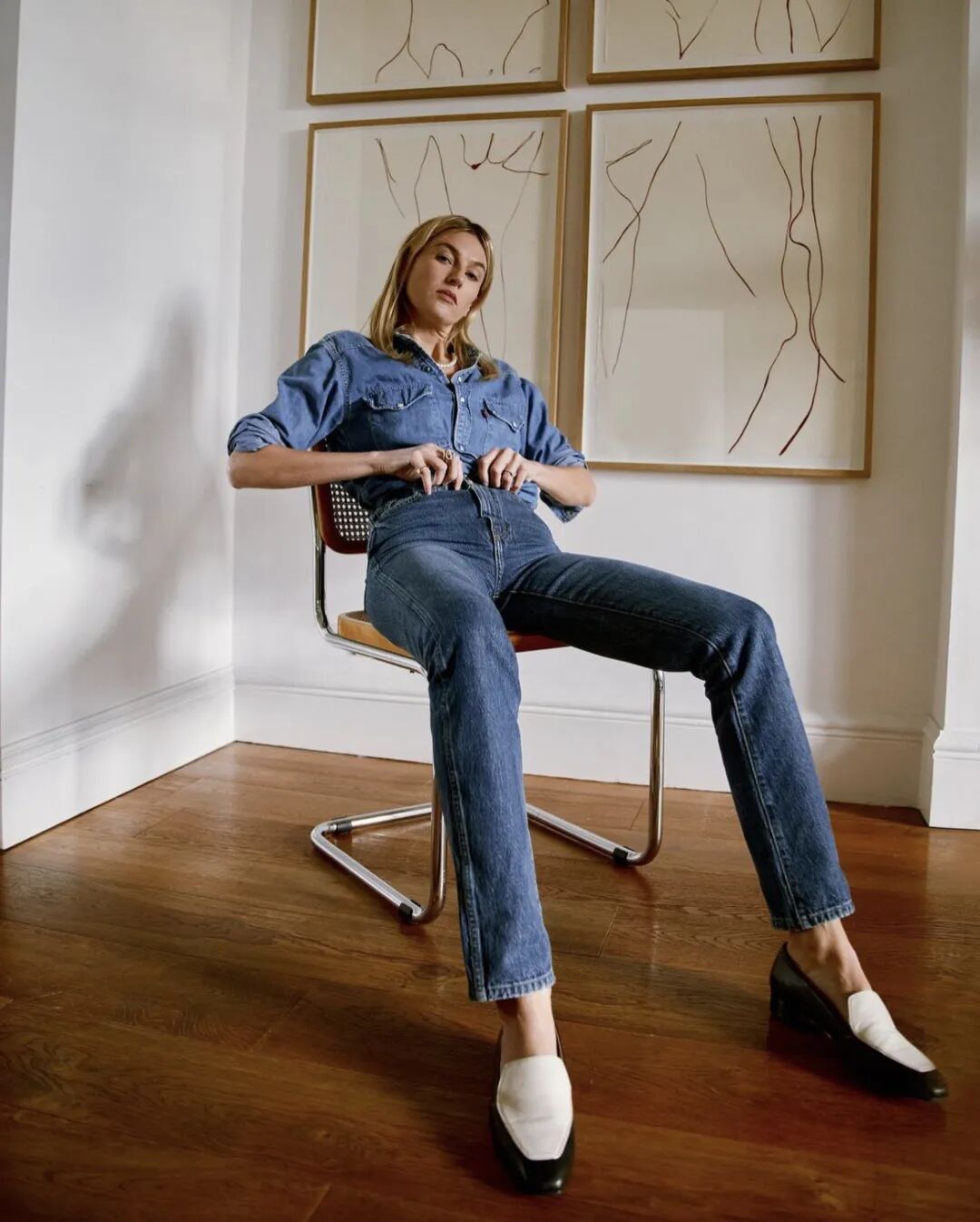 Kaia 則選擇了翻領款式的牛仔襯衫,搭配同色喇叭牛仔褲,很有 1970 年代的復古味道。