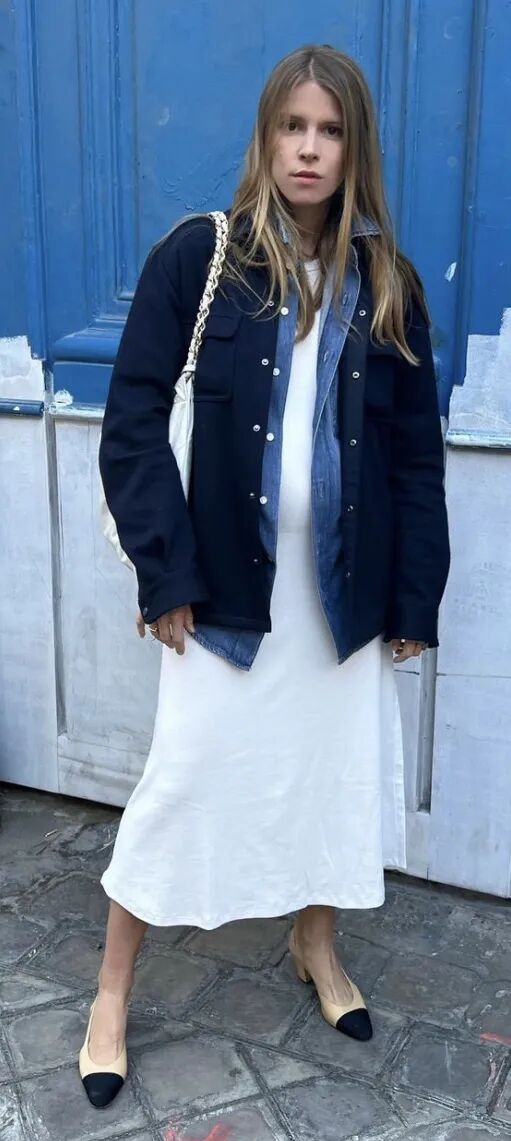 相比搭牛仔褲,配牛仔裙的穿法沒那麼常見。不過在街拍達人的穿搭裡,牛仔襯衫+牛仔裙也變得挺時髦。