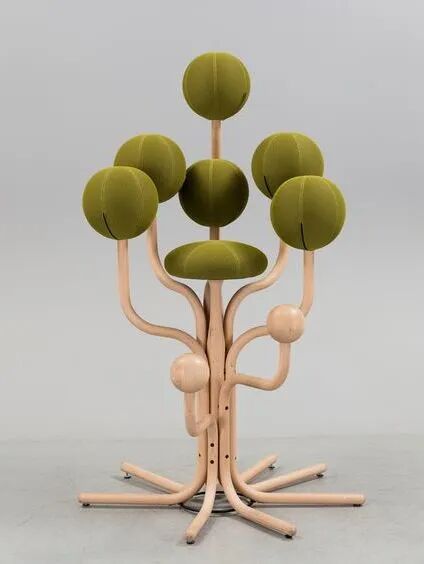 “我們的祖先曾坐在樹上”是 Peter Opsvik 設計這把椅子的初衷,讓大家更好的感受迴歸自然的感覺。GLOBED GARDER 顛覆了傳統座椅的造型,由彎曲的木條固定在一起形成基座,每個木條的頂端有一個圓球,乍一看就像棵充滿童趣的樹,滿足攀爬感的日常樂趣。但如果你覺得它可能不舒服就大錯特錯了,所有圓球分別給予了後背、扶手、頸部甚至腳底以支撐,且每個球都能隨著身體移動而轉動,手的擺放和腳的踩踏位置都恰到好處,非常符合人體工程學理念,讓你坐上去可以隨意變換姿勢且始終都能保證身心放鬆。