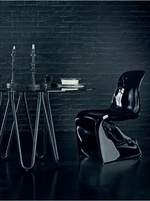 從椅背輪廓可以清晰看出男女兩個版本,呼應“Him”和“Her”,男版肌肉線條更明顯,女版曲線柔和美觀,而且椅子的線條與光澤都完美契合了人體特徵,讓它們看起來更加“性感”。設計的靈感源自《聖經》中亞當和夏娃的故事,原型來自丹麥的潘通椅,座面則源於裸坐男女模特的人體拓膜。Fabio 從不吝嗇表達他對人體曲線美的欣賞,在他看來,本真之美才是真的美。他的設計作品、書籍甚至他的紋身,展現的都是他的生活、靈感、呼吸,以及他的愛,充滿了夢想和激情。他就像時代浪潮的弄潮兒,引領藝術潮浪不斷向前。