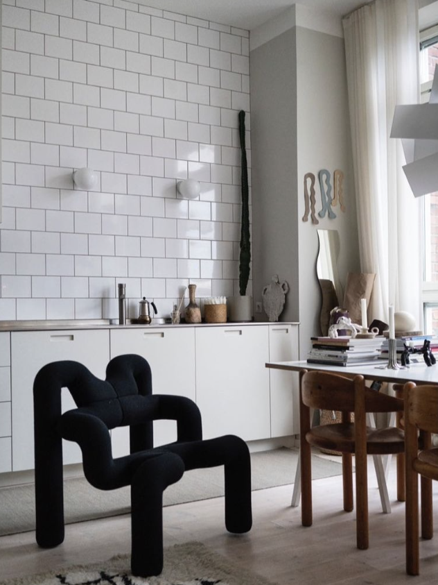 又浮誇又美的 Ekstrem ,不僅是把椅子,更是一個獨立物品,代表了挪威最早的後現代設計,更是當時設計師們不斷尋求新創意的體現。個性化十足的造型,讓它看起來就像幾條腿的組合,但又富有很高的靈活性,坐起來可癱可懸空也可以側向倚靠,創意 100 分!