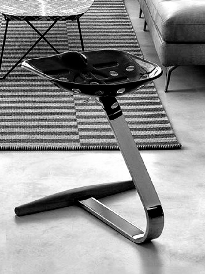 據說當時的意大利正處在以農業為主的階段,正逢復甦經濟的時刻,Giacomo Castiglioni 兄弟便受當時社會的影響,以“拖拉機”為靈感,將拖拉機行駛在不平整的路面時會產生較大的振幅沿用到設計中:以懸空的鋼板座位,安裝在類似於“弓弩”的鋼架上,並靠著一塊兒橫木穩立於地面,坐上去可以直觀的感受到彈力的緩衝,還拉滿了趣味感。無論是用作餐椅、休閒椅…都是一件實用與設計兼具的家居好物。不僅如此,它還被全球眾多博物館收藏其中,足以體現出它的經典。