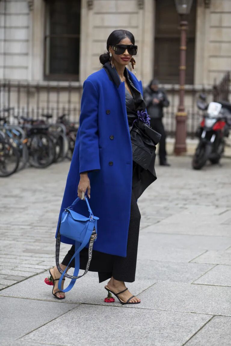 刻意為之的撞色細節也不要擔心突兀,在時裝週街拍的語境下這才叫敬業。btw,克萊因藍配血紅玫瑰好浪漫。