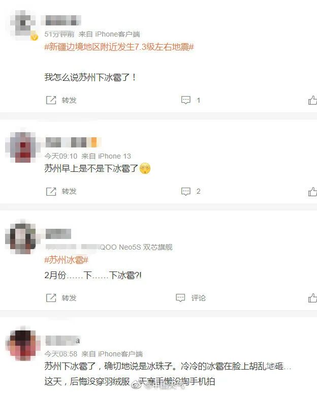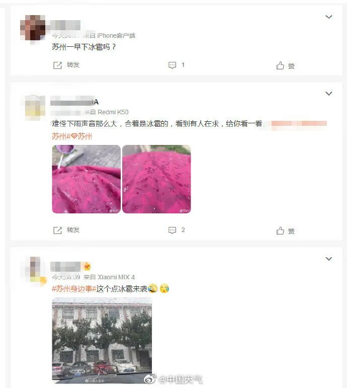 今早微博上甚至有網友爆料說:蘇州下冰雹了。