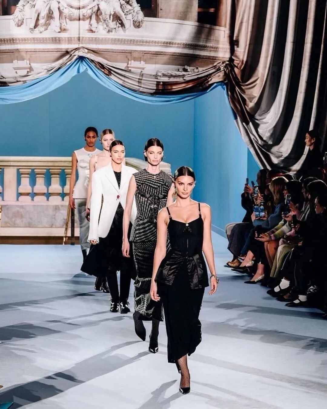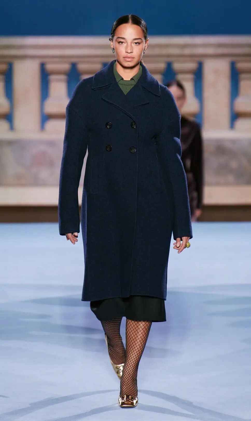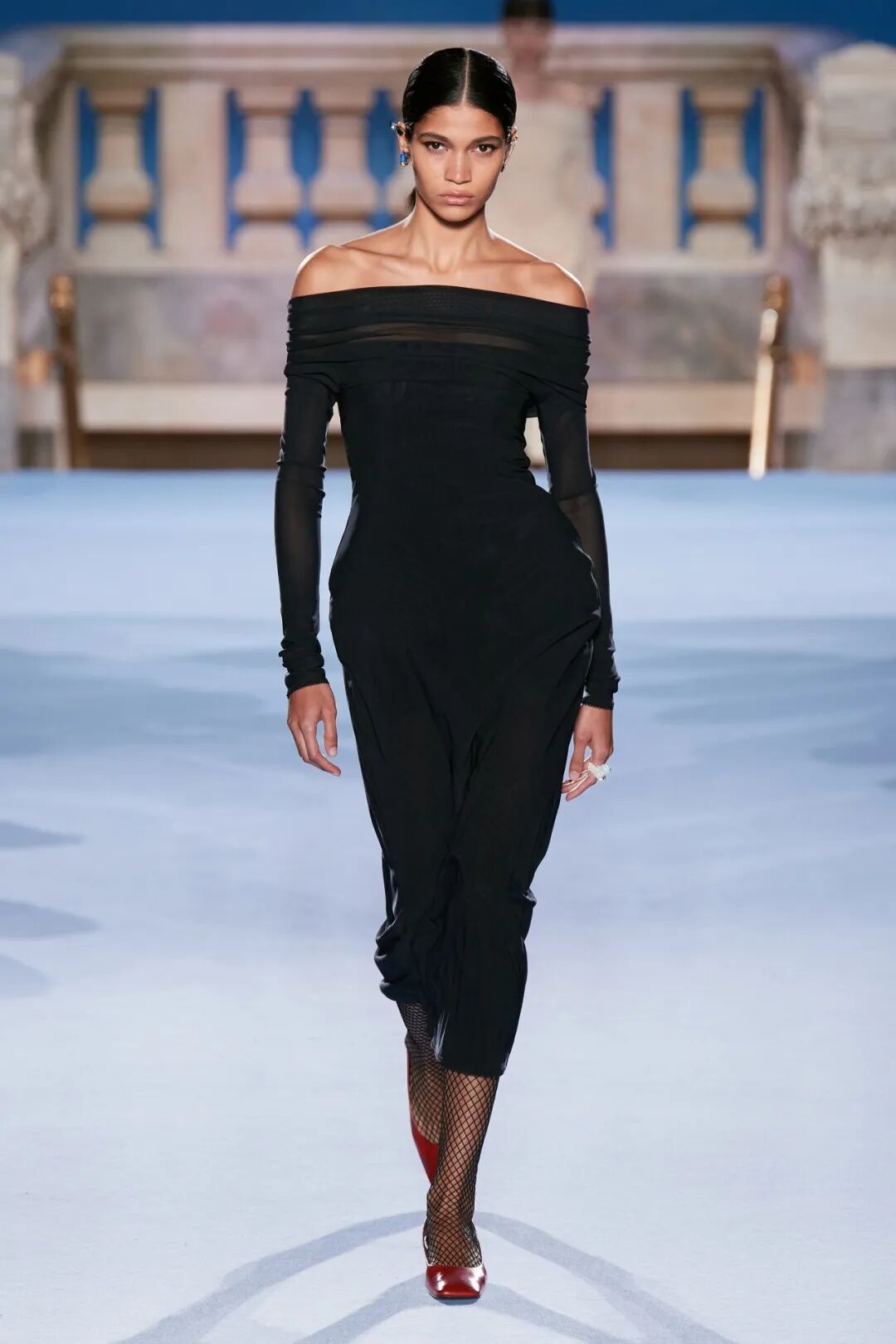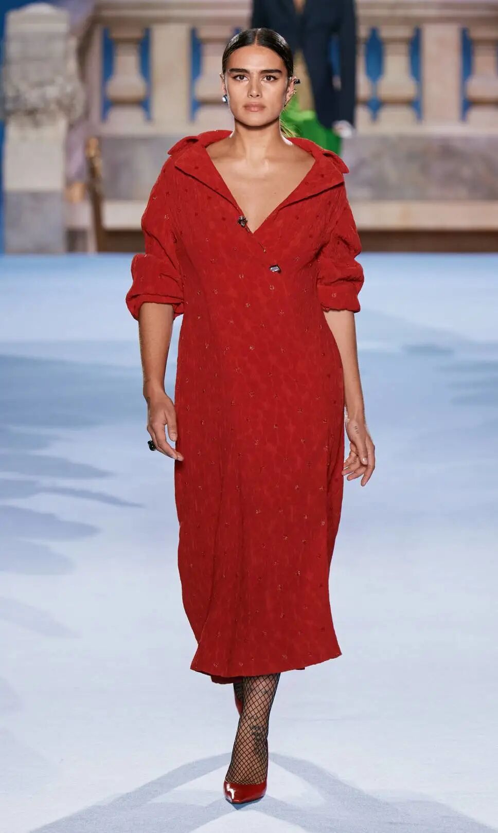 Tory Burch 2023秋冬系列大秀的地址位於紐約下東區錢伯斯街51號,大秀開場前全場柱廊上投影著扭曲的斷臂維納斯圖片,這尊古希臘雕塑是女性魅力的不朽象徵,訴說著直抵永恆的缺陷美與力量。