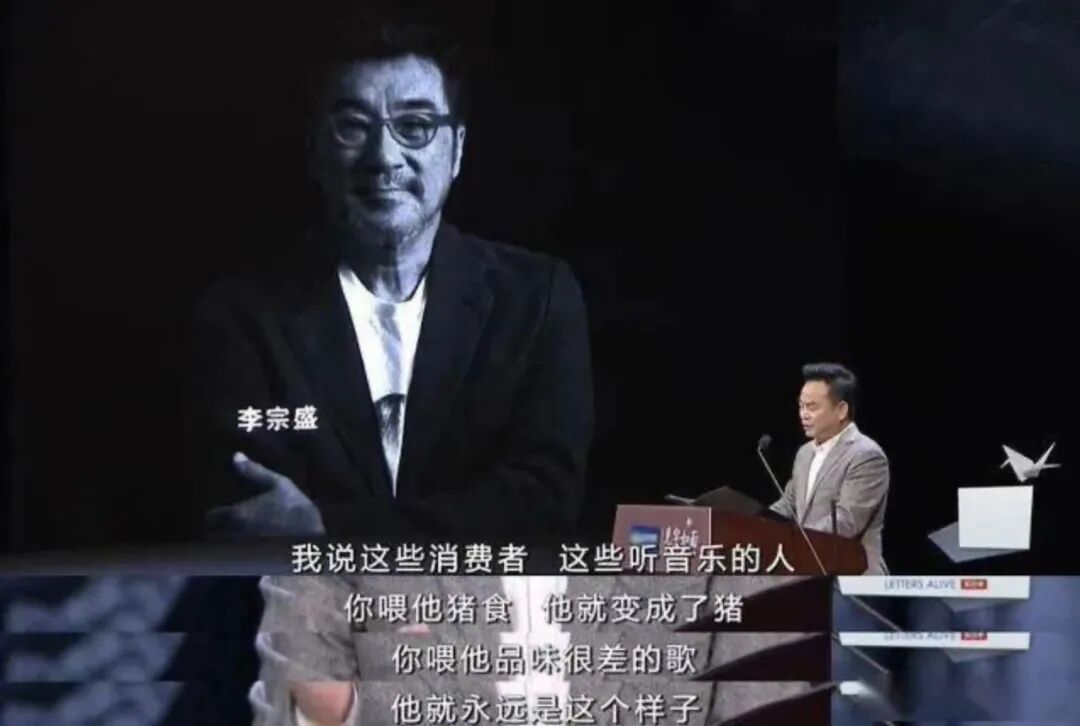 這讓我想起之前李宗盛大哥提過的“豬食論”,意思是說,這些愛聽音樂的人,你喂他豬食,它就變成豬。你只喂他品味很差的歌,他就永遠這樣子。