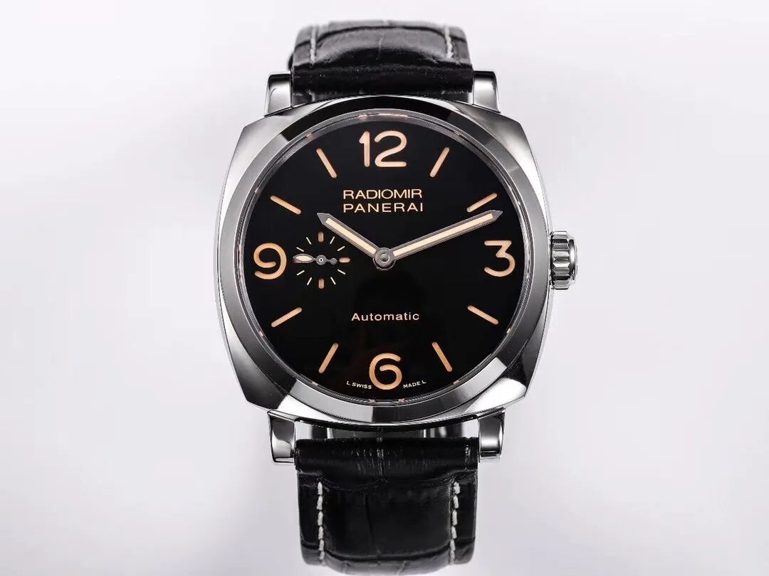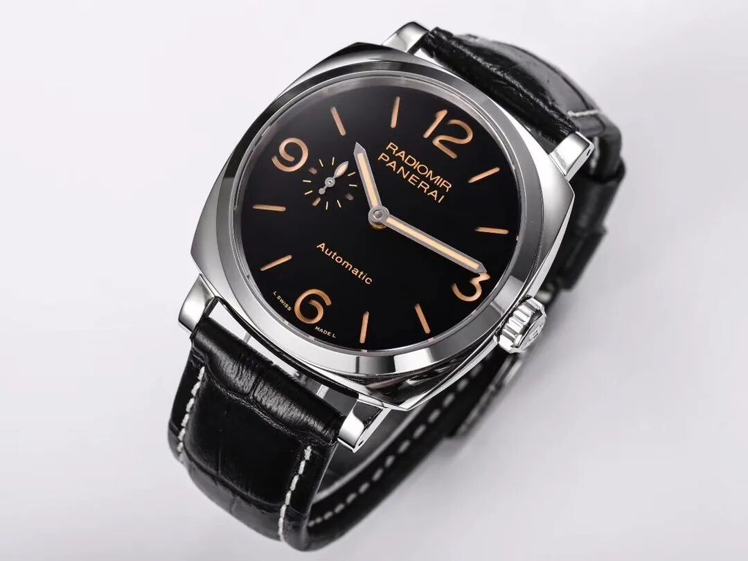 這款Radiomir 1940 3日動力儲存自動精鋼腕錶再現了1940年前後所創制的多款歷史錶款的設計,其直徑為45毫米,以AISI 316L精鋼製成。拋光大表框環繞辨讀性能優異的經典錶盤,其設計極盡簡約。在設計上,它繼承了自四十年代末期以來的傳統。旋入式的上鍊錶冠,鋸齒邊緣設計簡單易上手,啞光打磨的錶冠上銘刻的OP標誌,提供約100米的防水。錶殼採用AISI 316L不鏽鋼,因為它具有高抗蝕性同時低過敏,與皮膚接觸絕無問題。鋼材厚度只有6毫米或更薄,可以戶外活動時所遇的極端環境。配備偏心式擺陀的自動上鍊機芯。這意味著,擺陀的直徑小於機芯本身,這項精密的卓越技術令機芯以及腕錶整體都變得更纖薄。