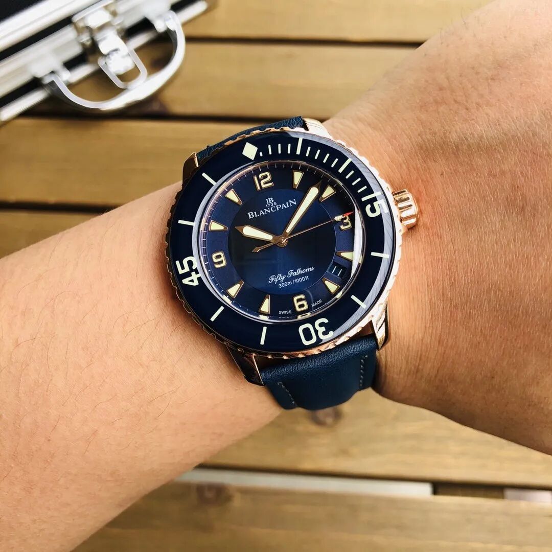 緞面磨砂紅金錶殼第一次與引人注目的藍色陶瓷錶盤並列呈現,貴氣十足。搭載專為豪華運動腕錶設計打造的1315機芯,配備45毫米直徑錶殼,防水深度可達水下300米。對經典充滿敬意,在表圈材質及設計上的更多嘗試與突破。數字、時標、塗覆夜光材料的指針、弧形防刮藍寶石玻璃表鏡及單向旋轉表圈,是五十噚的經典元素。搭載5天的動力儲存能力的1315機芯,配合硅遊絲,輕鬆應對潛水環境的強大磁場。