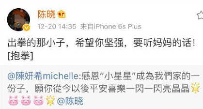 陳曉還曾專門發文力挺陳妍希: