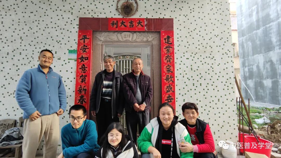 師:有速度,這種平常分享的東西,真的有一些光彩,它不會亞於正規的講課!當時我跟餘浩老師,好多知識點都是老師平時切藥、採藥、爬山還有務農時講出來的,我把它融進《跟診日記》裡,並不是在坐診臺或者課堂上講的,還有些是搓藥丸聊天出來的。所以,你若要學好東西,要重視平常!並不是說要在大課堂。下午大家過去大姨丈那邊貼對聯,大姨丈是老村長,叫建平,我就寫了: