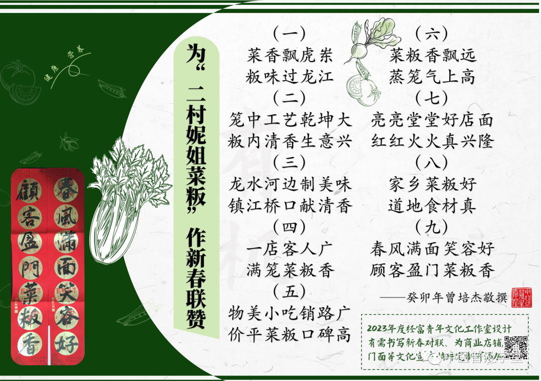 老師為了做好上門樓聯,我做了19首,村委裡的人就選這首,子祥博士也看了。我始終認為自己文采不夠,所以就多做,人要是不認真,別人會不當一回事。有許多店鋪來請老師作聯,老師都作五副、六副給他們選擇,這就叫嚴肅認真!