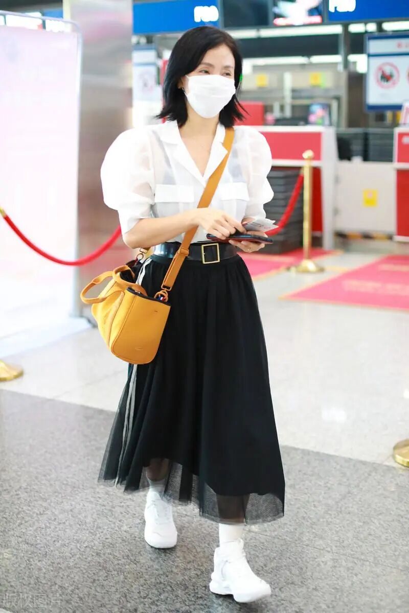 黑白色的搭配,更是永遠都不過時的經典。白色的襯衫搭配了黑色的高腰紗裙,有一種非常精緻的美好。而下身這種薄紗的點綴,唯美而浪漫,高級簡約的穿搭,完全不失氣場,配一雙白色運動鞋,也是活力十足又減齡。