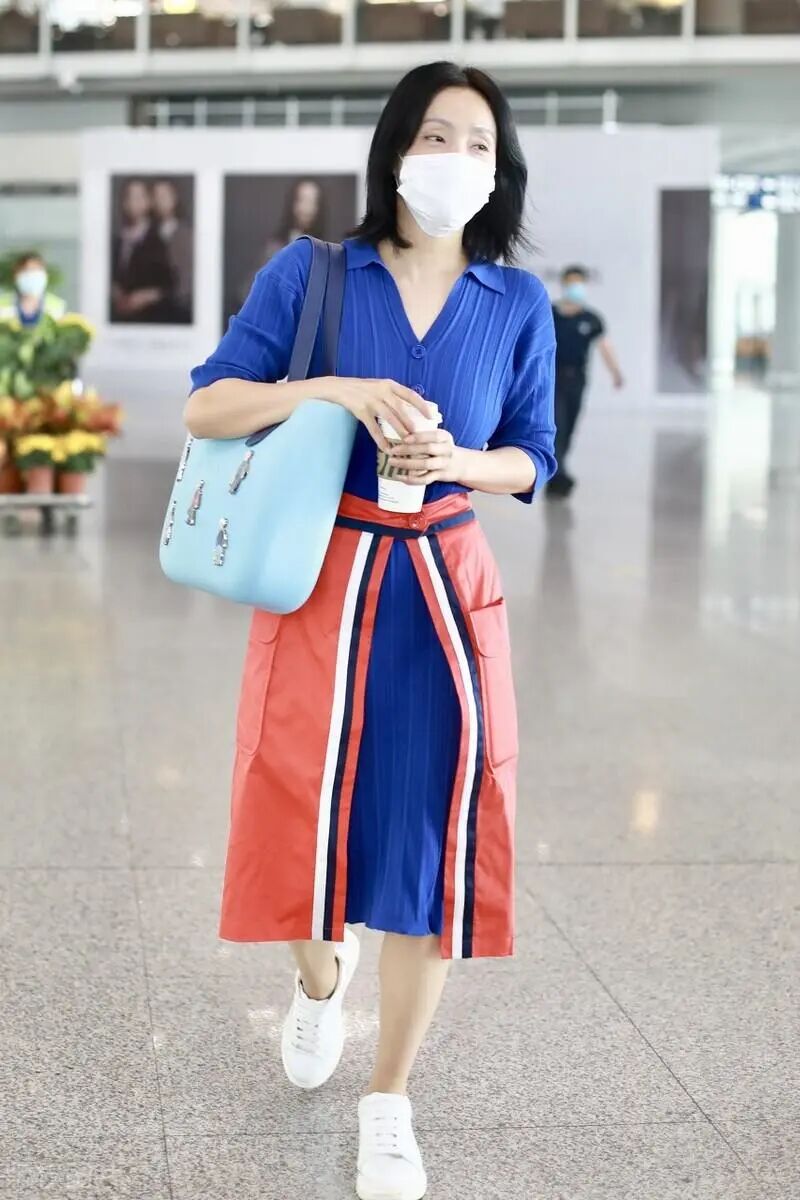陶虹日常的穿搭,也是非常簡約而靚麗的。一條寶藍色的連衣裙,點綴了紅色裙襬的修飾。這種紅藍色的搭配,整體氣質更加出挑,更多了靚麗減齡的美好。配上一雙小白鞋,洋溢出青春的魅力,也是活力十足。