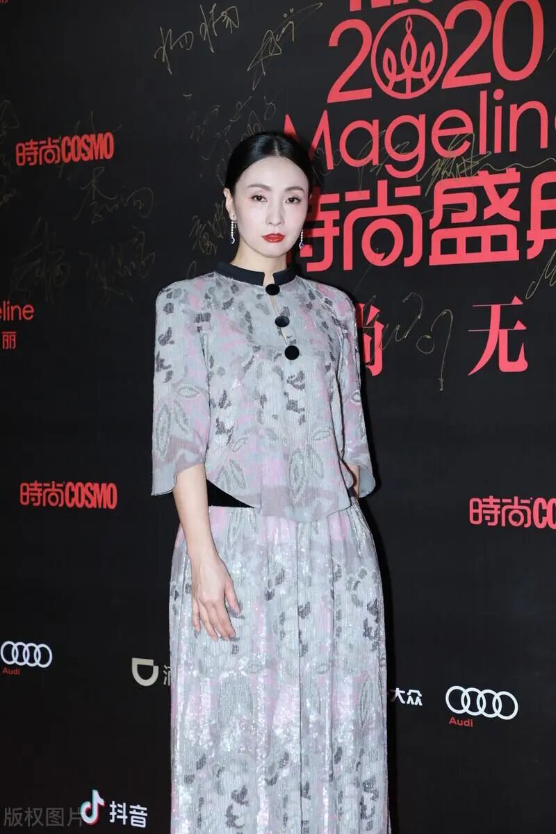 簡約的版型設計,反而可以展現出高級的美感。陶虹穿的這件緊身裙,就是非常簡約的設計。