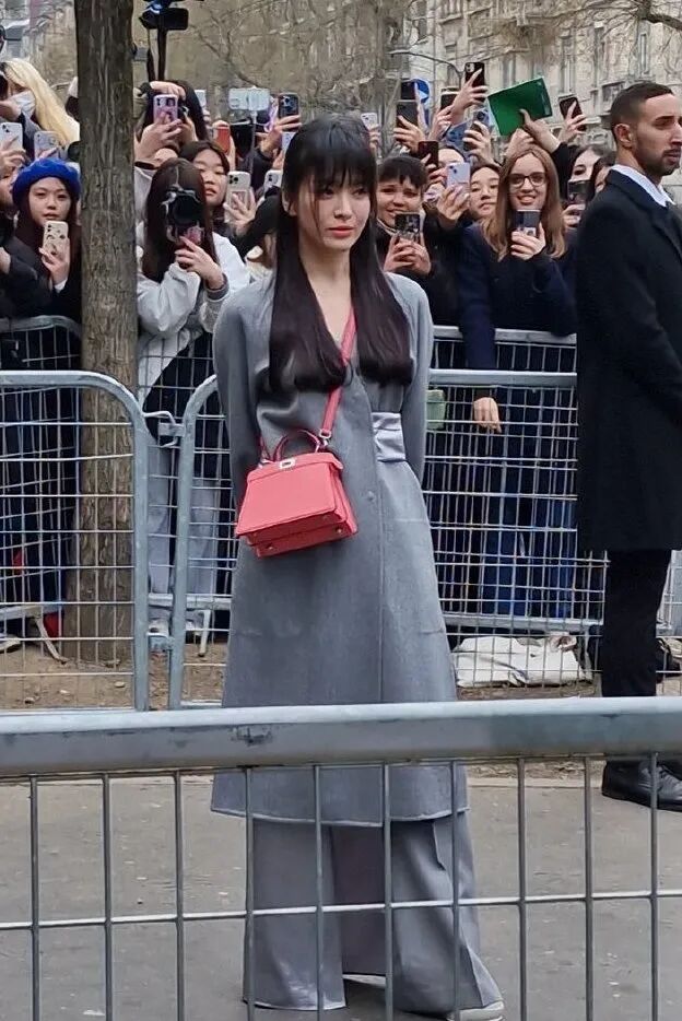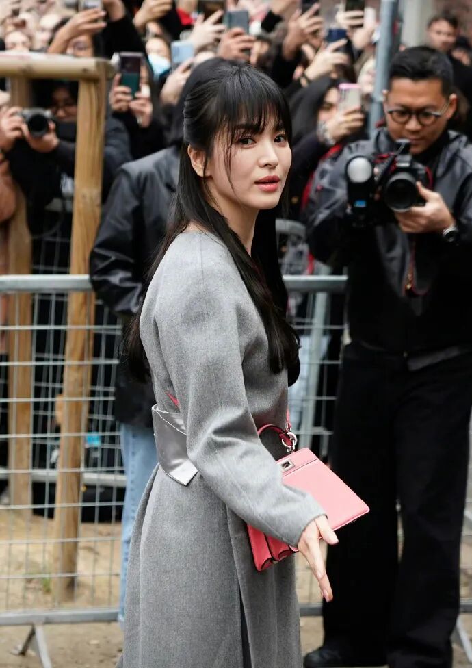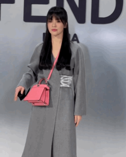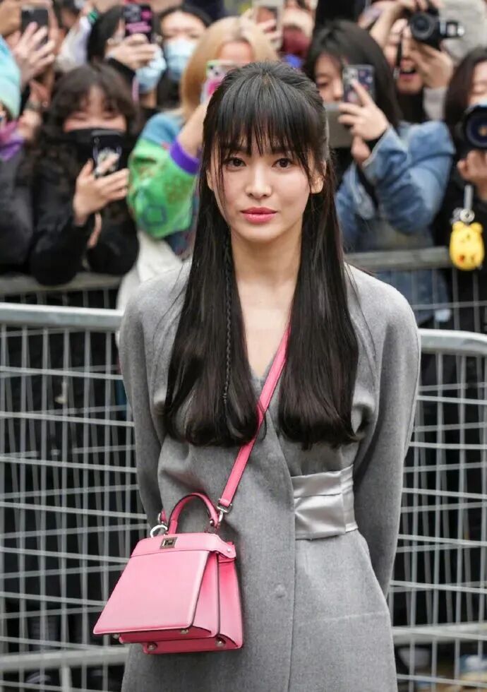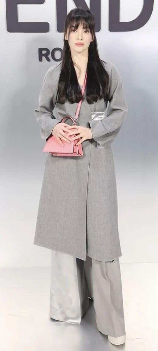 最近,宋慧喬亮相 Fendi 秀場,灰色大衣搭配芭比粉小包,一頭黑長直半扎發,顯得溫婉十足。