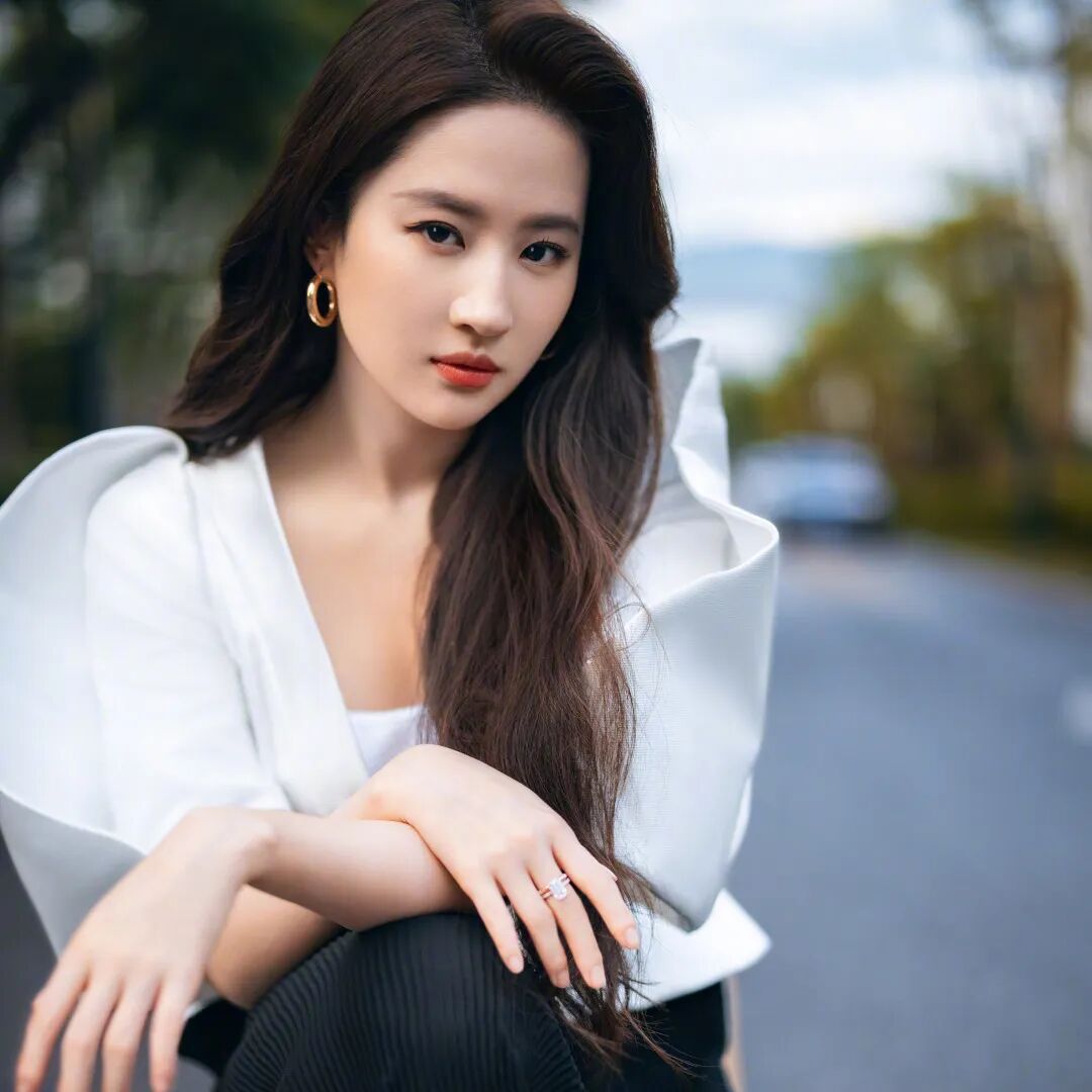 劉亦菲的三庭五眼分佈很標準,劉海反而會破壞五官的和諧性。