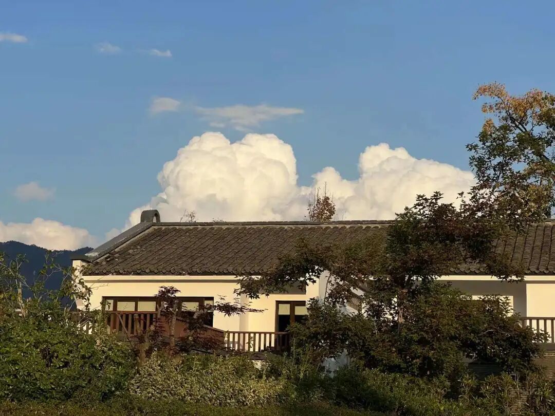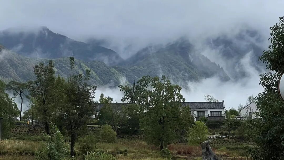 外面下著淅瀝瀝的小雨,遠處的山早就被霧氣籠罩了,白色的徽派小屋,古樸的牆壁,向下看是一條流經村莊的溪流,May激動地站在露臺舉起手機跟我分享這一切。