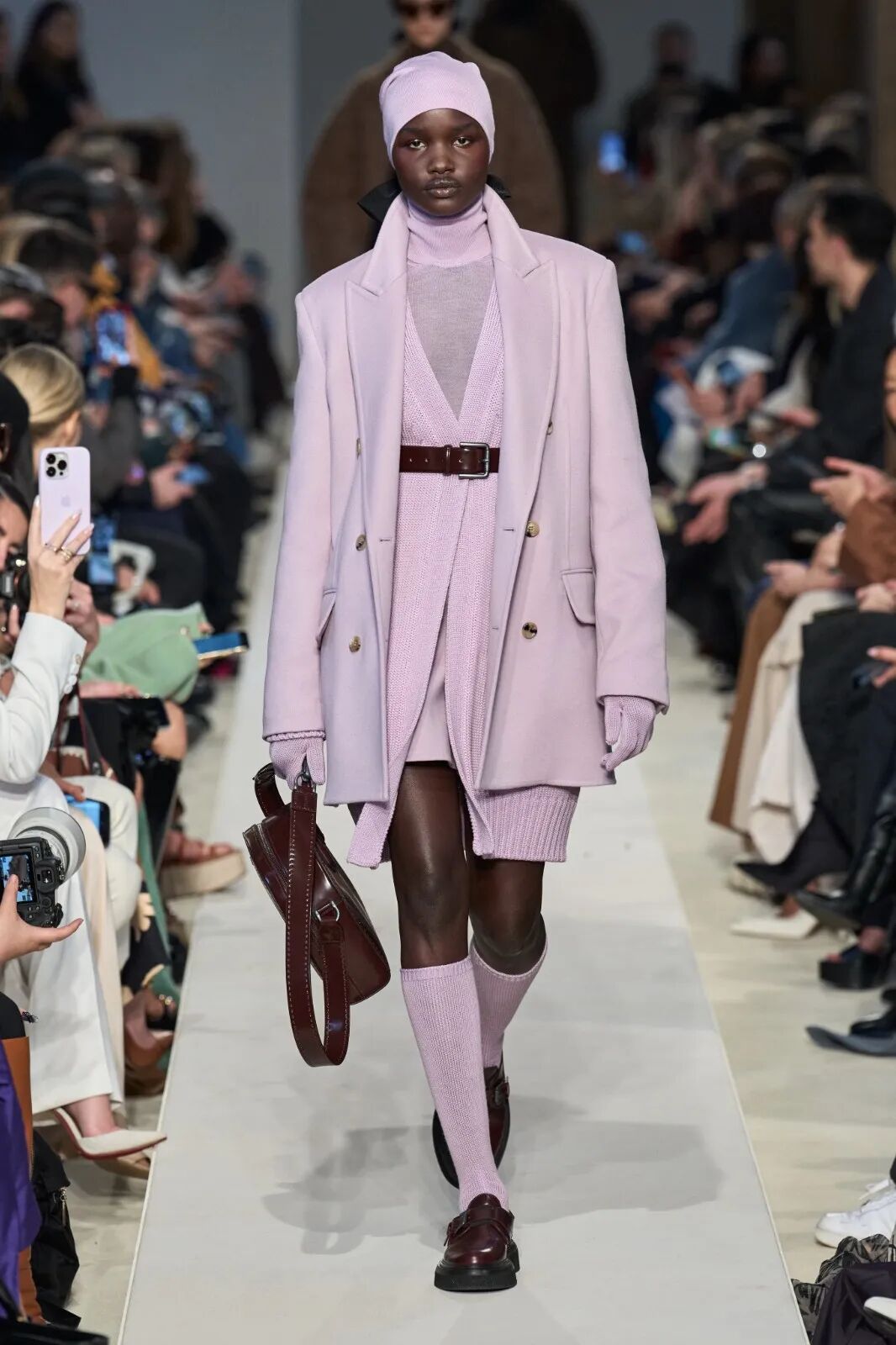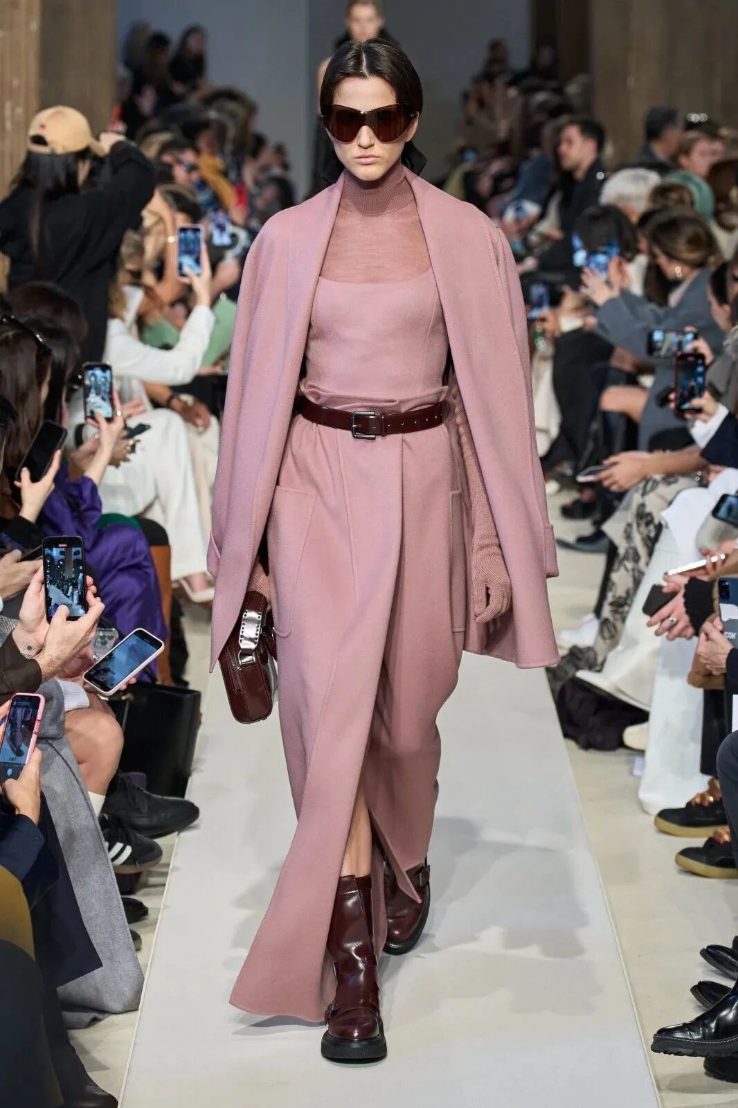 乾枯玫瑰色、知更鳥蛋藍、蘭花紫等色調穿插駝色之中……她不只有理性的思考,女性荷爾蒙也在盡情釋放著感性的柔情。