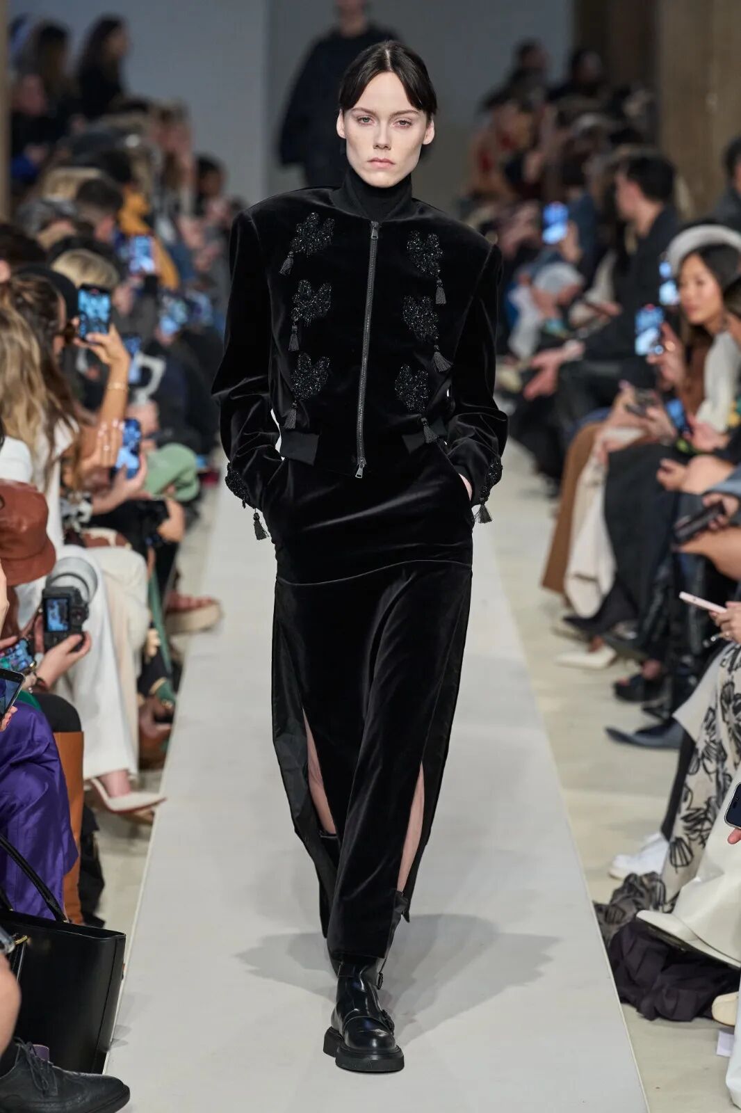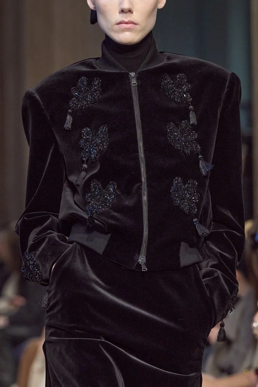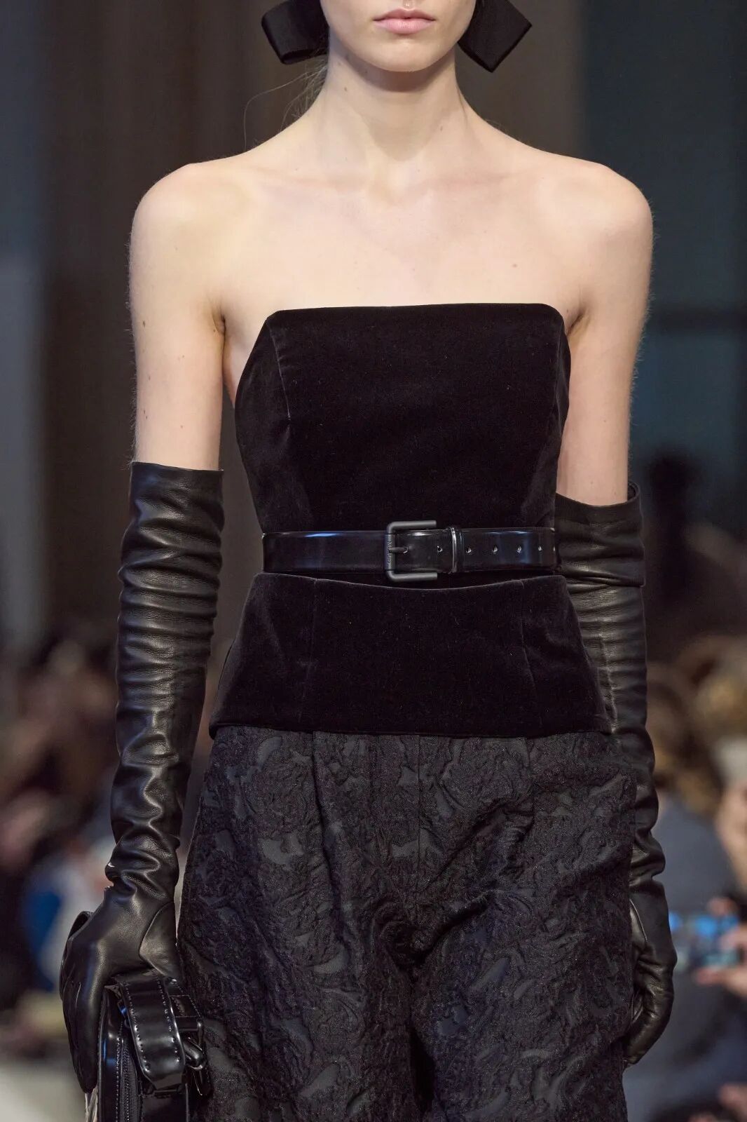 絲絨上勾勒著靈動的流蘇裝飾;黑色緞帶穿插裝飾在頭頂、身側;柔軟的皮質長手套……無不述說著古典派的優雅與細膩,其中也透露著女性衣櫥煥然一新的從容。