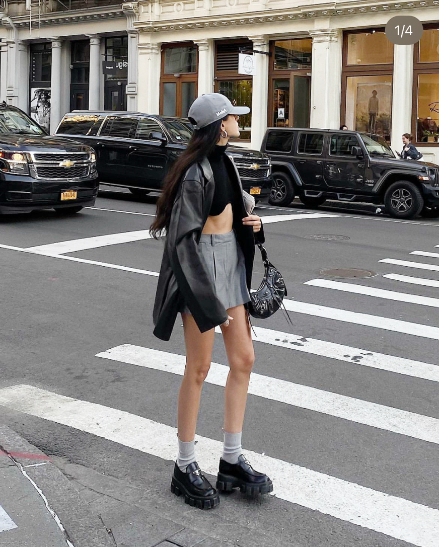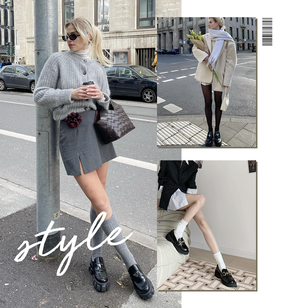 穿樂福鞋要想顯腿細,在襪子長度的選擇上也要有小心機,