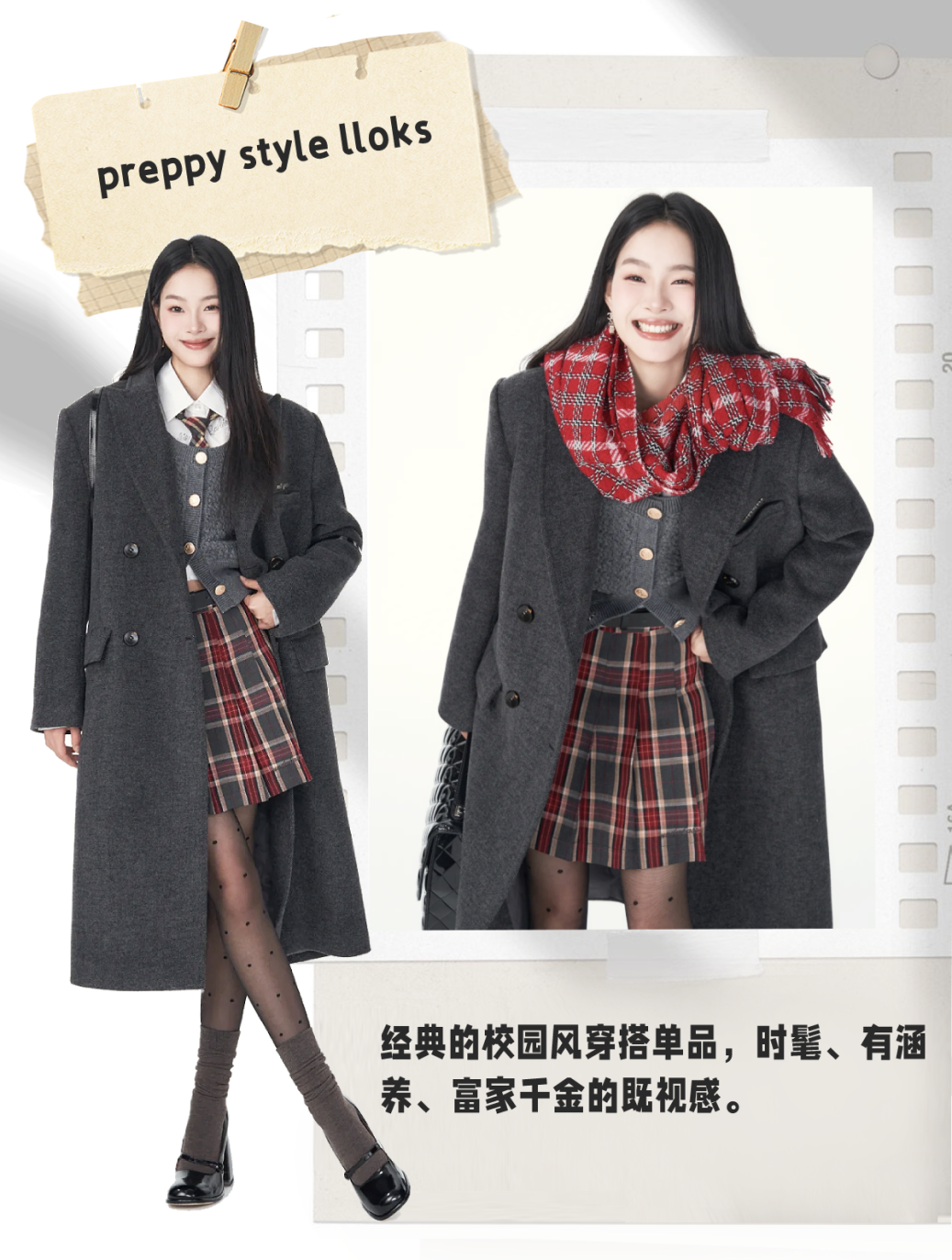 或者內搭把一整天preppy style的裝備穿上,外面再來一件筆挺的長款呢子外套,就超級拿捏。