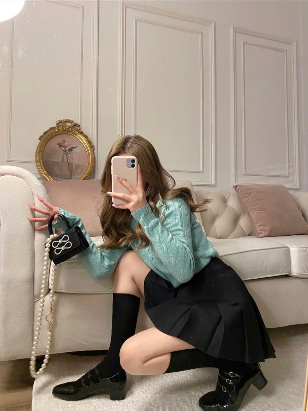 可能有很多姐妹都不敢嘗試襪套,但它在制服感的穿搭裡是很和諧的存在。