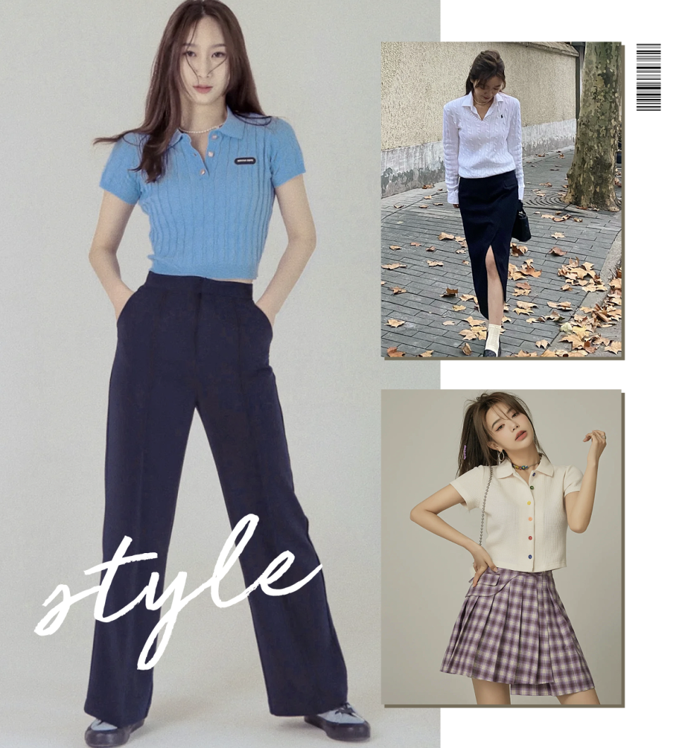 想要把polo穿時髦,只要抓住”上短下長“的核心就可以。