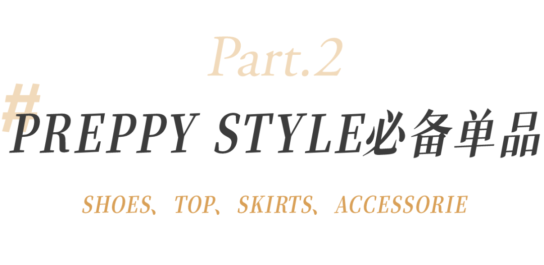 接下來再講講Preppy Style必備的一些單品,穿上它們就立刻能讓這種上東區的氛圍感拉滿了~